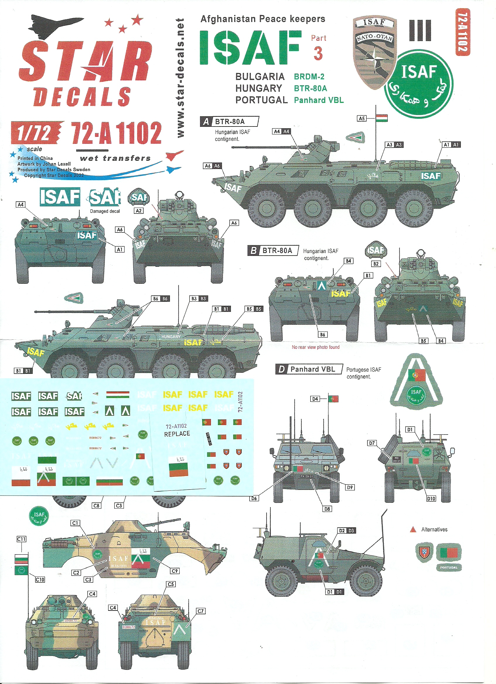 Star Decals 1/72 ISAF Afghanistan Peace Keepers Part 3 - Bulgaria & Others |